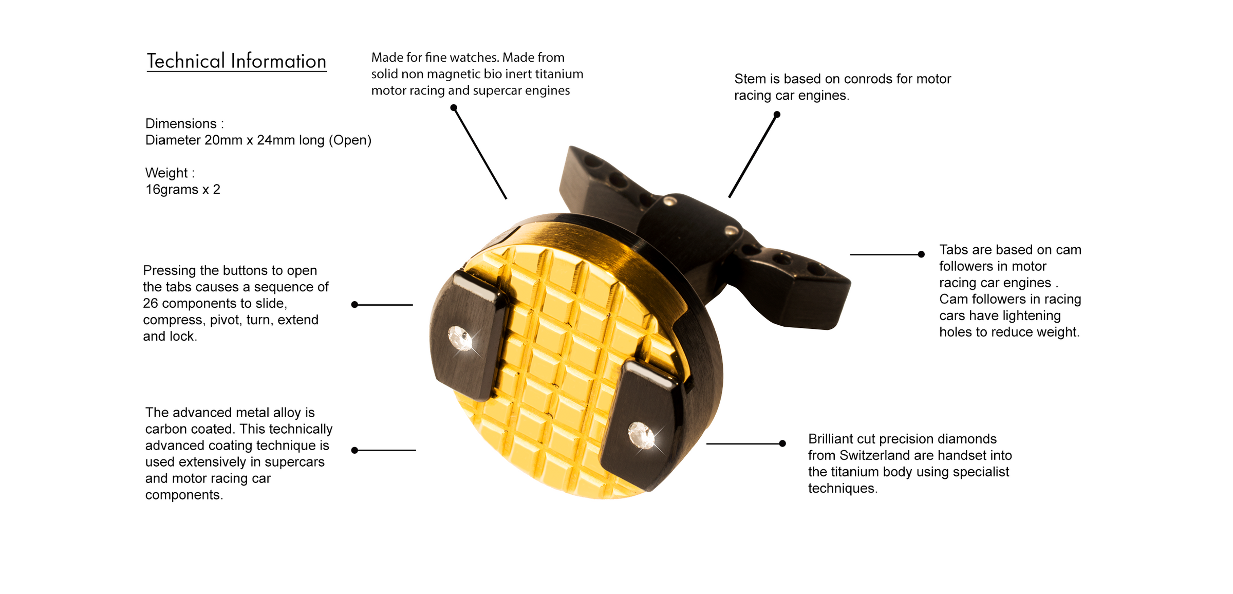 MECHANISED CUFFLINKS MADE SPECIFICALLY FOR FINE WATCHES WITH MECHANICAL MOVEMENTS.